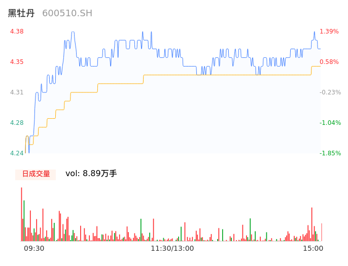 04月25日,黑牡丹收报4.36,股价涨幅0.93%,成交金额3855.18万元,换手率0.86%。