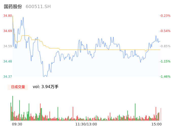 04月24日,国药股份收报34.64,股价涨幅-0.69%,成交金额1.36亿元,换手率0.71%。