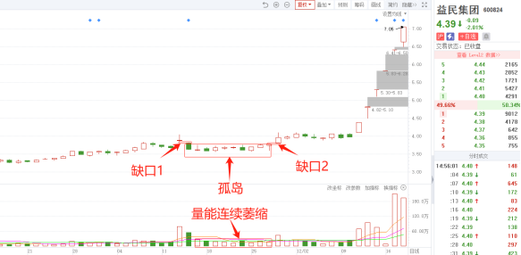 之后在2024年11月28日出现跳空上行,缺口价格是3.78-3.8,价格与前一个缺口并未完全重合,但位置是接近的,其后股价稍作横盘整固之后反转向上,也形成了“岛形反转”的技术逻辑。