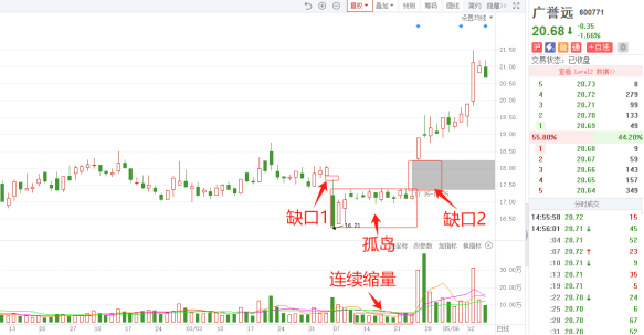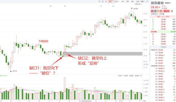 但需要注意,第二个缺口是重要支撑,股价后续可以回踩,但最好不要完全跌破,否则股价容易再次转折下行。