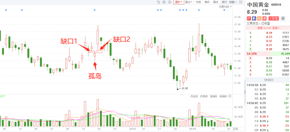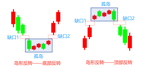 “岛形”形态,顾名思义,是指两个相同位置的反向跳空缺口,将个股的单根K线或者一组K线与连续的股价走势隔离开来,形成类似“孤岛”的结构。