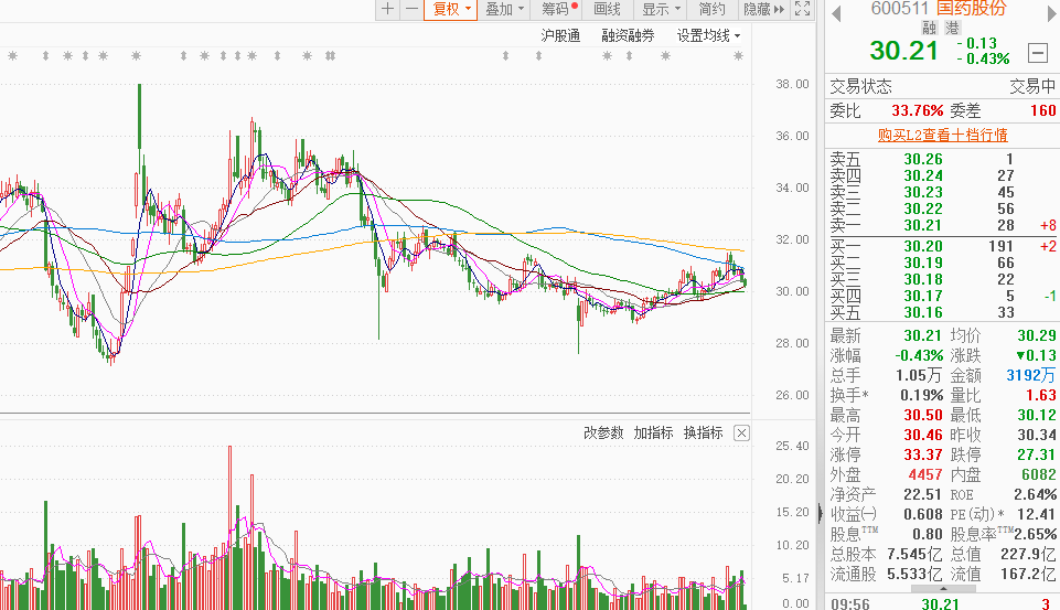 国药股份当下股价和估值处于上市以来的中位值偏下,长期整体趋势向上,经营业绩稳健增长,显然价值被低估;今年以来股价得到稳步抬升,阶段性底部逐步抬高,60日均线附近强支撑,中短期乃至长期都有很好的参与价值;该股市值仅200多亿,但有多家基金(包括社保、公私募)和外资持股,筹码较集中;不管是业绩估值,市值大小还是概念属性(国资医药商业),都是游资和主力喜爱的品种,兼顾防御和进攻。