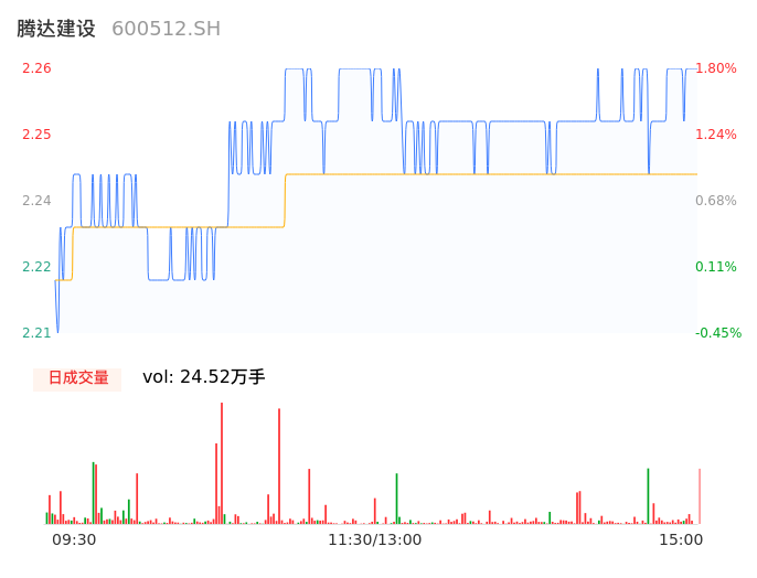 04月02日,腾达建设收报2.26,股价涨幅1.80%,成交金额5499.43万元,换手率1.55%。