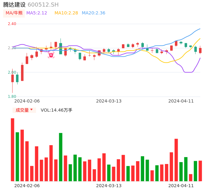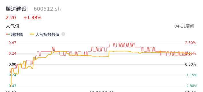 04月11日,腾达建设收报2.20,股价涨幅1.38%,成交金额3171.95万元,换手率0.91%。