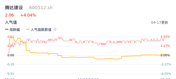 04月17日,腾达建设收报2.06,股价涨幅4.04%,成交金额3740.10万元,换手率1.16%。