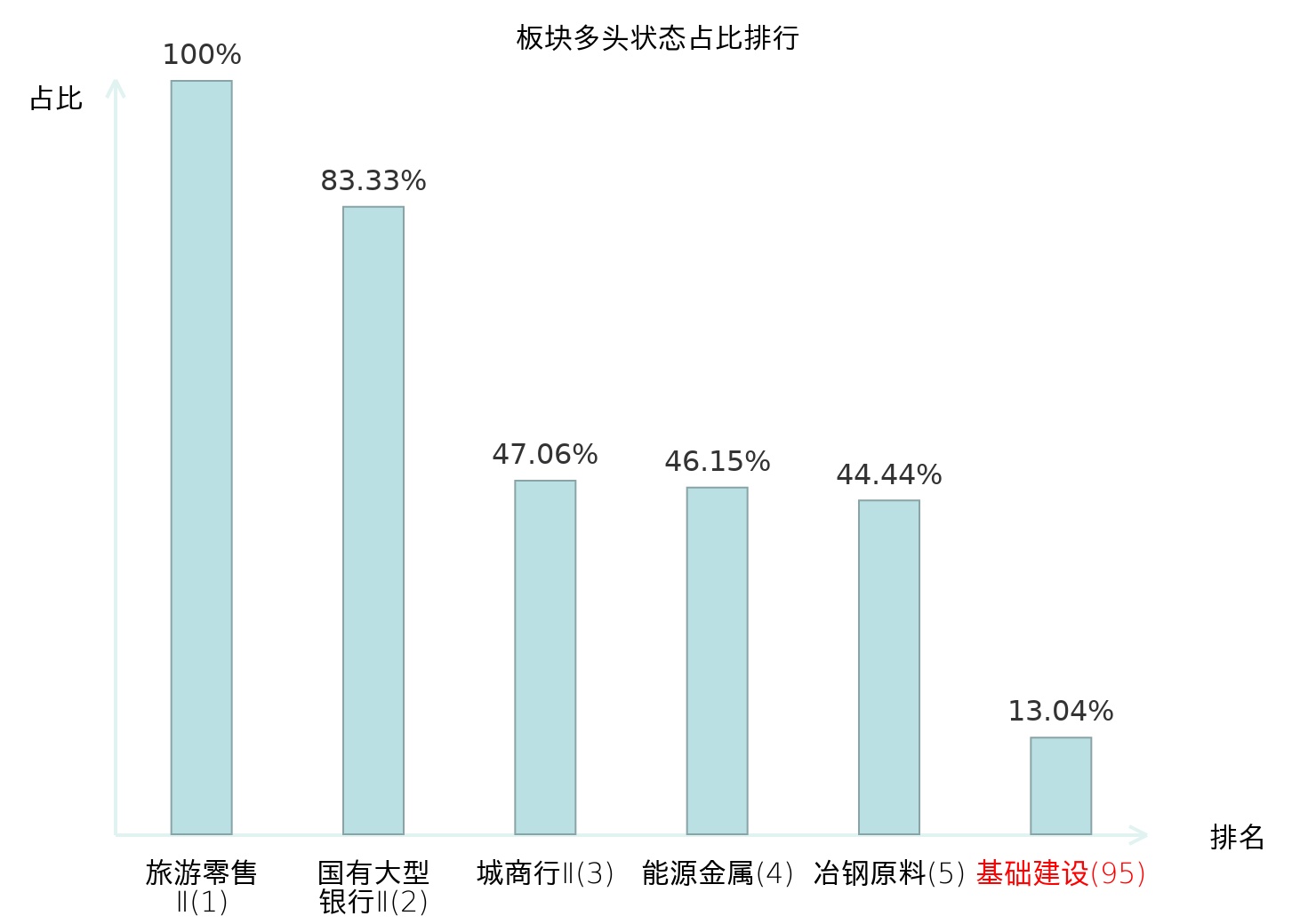 全市场所有行业板块中主力多头状态占比排名中,旅游零售Ⅱ板块位居第一。照明设备Ⅱ板块名次提升最快,较昨日上升59位。