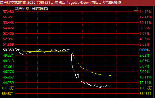 在今日午间发布中期业绩后,港股瑞声科技(02018.HK)快速下跌,盘中最大跌幅超14%。