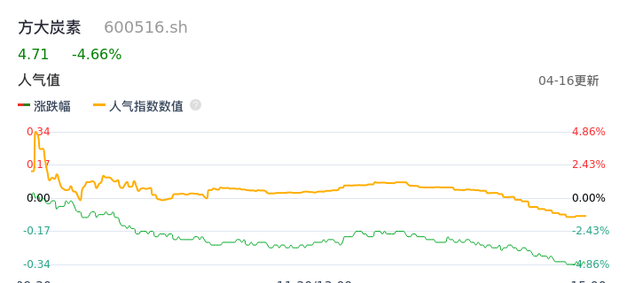 04月16日,方大炭素收报4.71,股价涨幅-4.66%,成交金额1.83亿元,换手率0.94%。