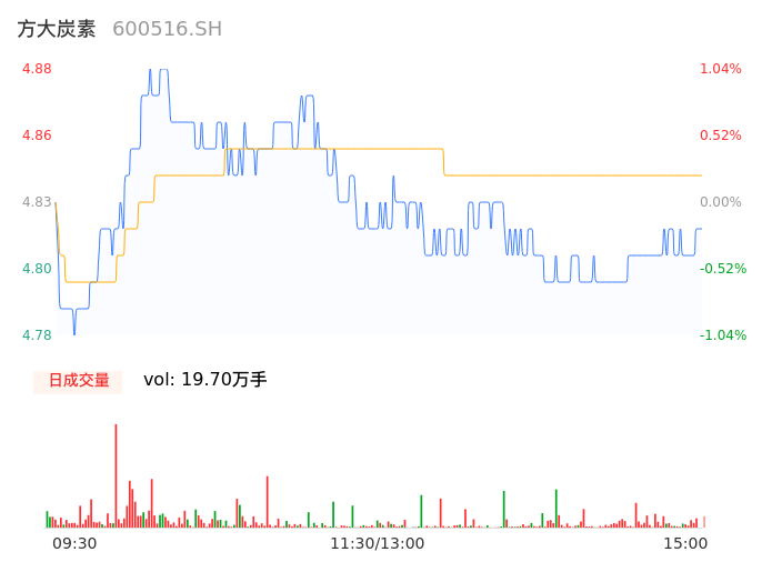 04月25日,方大炭素收报4.82,股价涨幅-0.21%,成交金额9527.21万元,换手率0.49%。