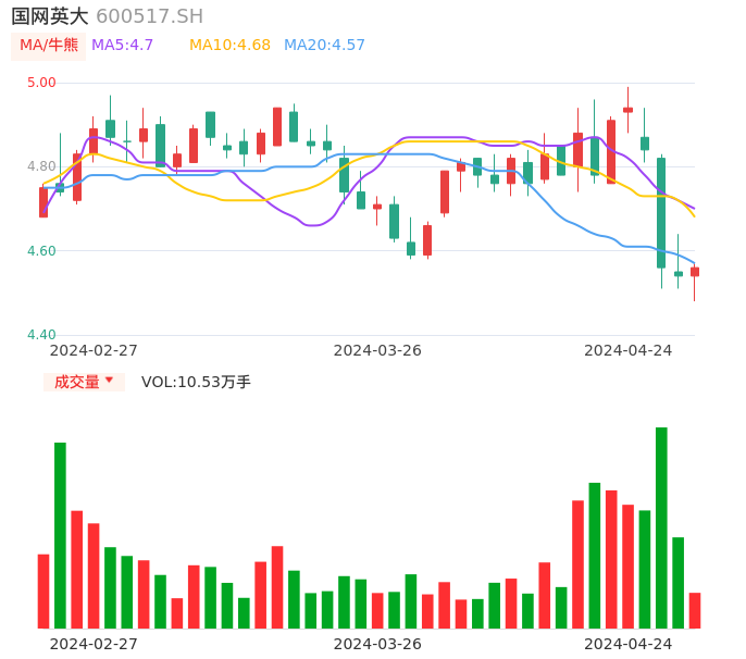 04月24日,国网英大收报4.56,股价涨幅0.44%,成交金额4770.91万元,换手率0.18%。