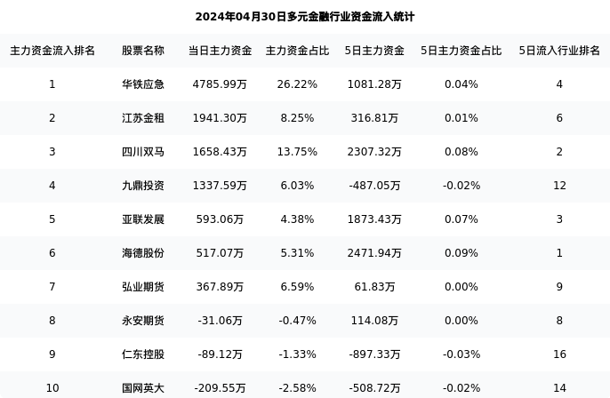 从主力资金流向来看,多元金融行业今日主力资金流入16.54亿元,在所有申万二级行业中排名:58/131。