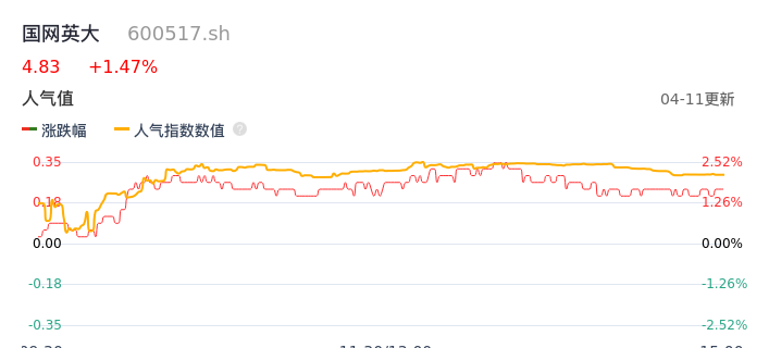 04月11日,国网英大收报4.83,股价涨幅1.47%,成交金额7361.68万元,换手率0.27%。
