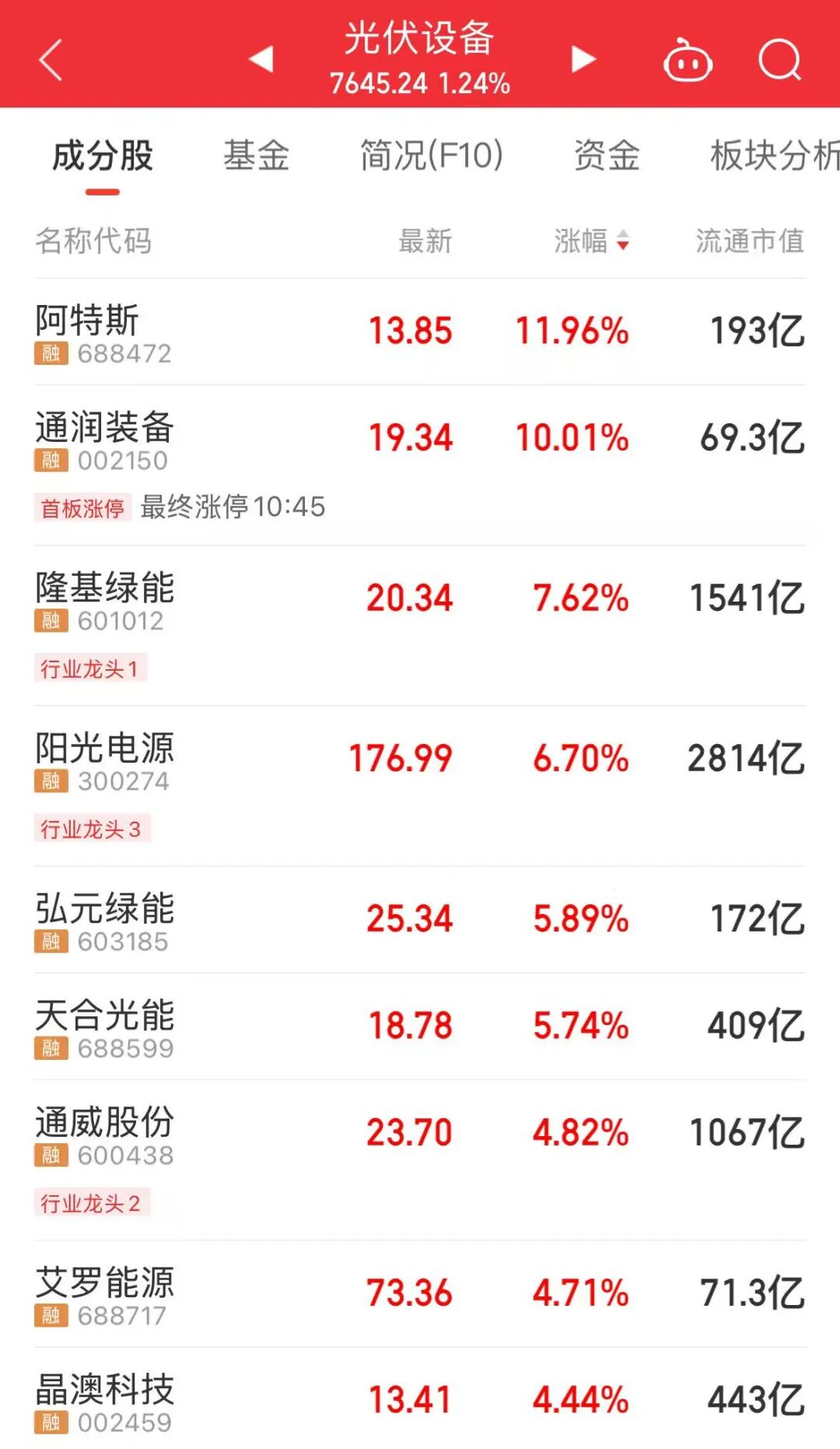 三是新能源赛道反弹,宁德时代、隆基绿能、亿纬锂能、阳光电源等龙头股上涨。