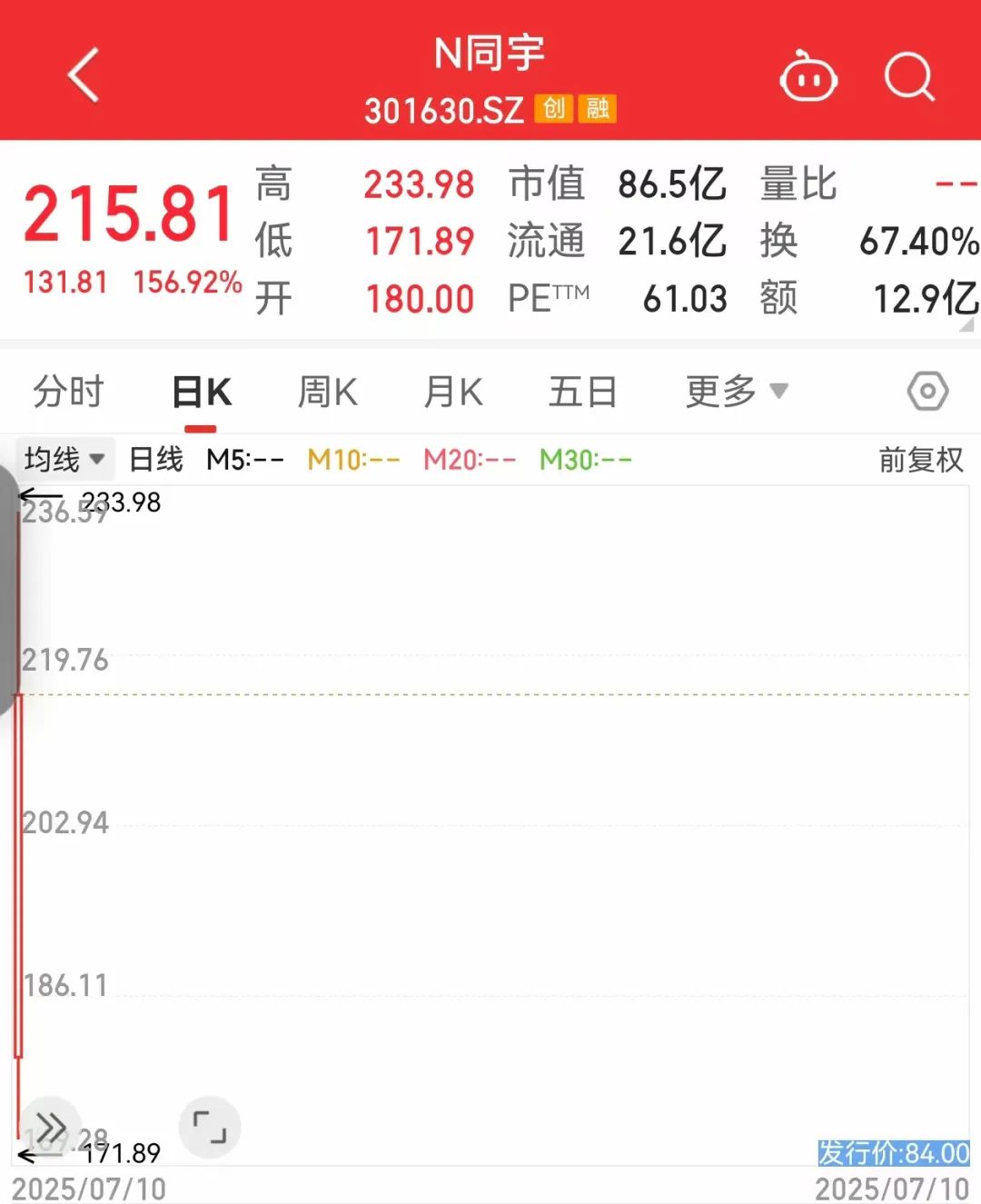 N同宇今日(7月10日)上市,开盘价180.00元/股,截至发稿,上涨超156%。