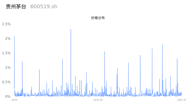 然后我们来看下当日成交的价格分布。将今天股票的最低价与最高价之差形成的价格区间进行切片,并画直方图进行分析,观察成交量在价格区间的分布情况。可以发现,当日的成交分布呈现中间峰分布,这说明,该股票大部分成交集中在中位数附近,说明交易重心较为稳定,短线波动不大。