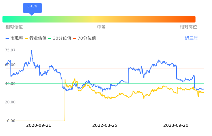 贵州茅台当前市盈率PETTM为33.25,在所属的白酒中,市盈率PETTM排10名。前5名分别为口子窖PETTM19.23、洋河股份PETTM19.61、五粮液PETTM21.67、舍得酒业PETTM24.91、今世缘PETTM26.24。从PETTM估值走势数据来看,贵州茅台当前市盈率PETTM为33.25,超过近3年12.50%的历史数据。