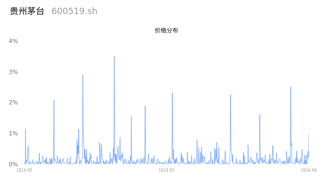 然后我们来看下当日成交的价格分布。将今天股票的最低价与最高价之差形成的价格区间进行切片,并画直方图进行分析,观察成交量在价格区间的分布情况。可以发现,当日的成交分布呈现中间峰分布,这说明,该股票大部分成交集中在中位数附近,说明交易重心较为稳定,短线波动不大。