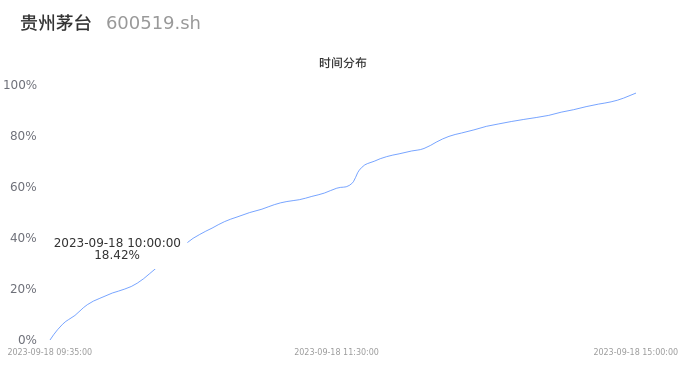 600519贵州茅台2023年09月18日成交3.26万手,成交金额59.05亿元,相较昨日放量4127手,换手率0.26%,成交清淡。