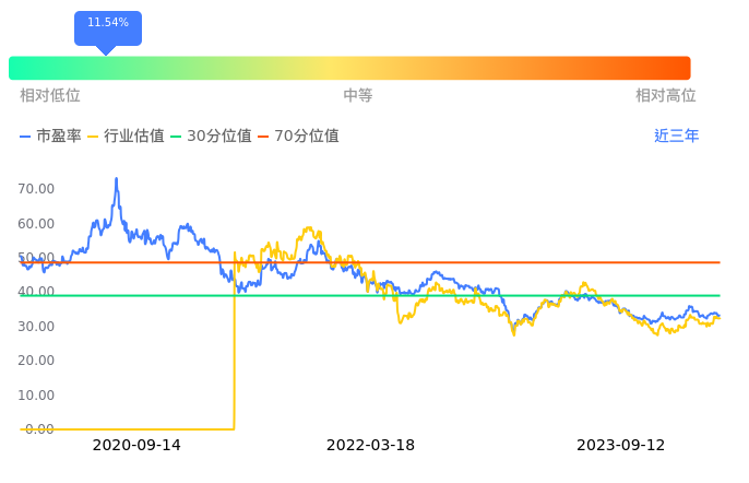 贵州茅台当前市盈率PETTM为33.18,在所属的白酒中,市盈率PETTM排9名。前5名分别为洋河股份PETTM20.07、口子窖PETTM20.74、五粮液PETTM22.19、今世缘PETTM26.42、舍得酒业PETTM26.77。从PETTM估值走势数据来看,贵州茅台当前市盈率PETTM为33.18,超过近3年11.54%的历史数据。