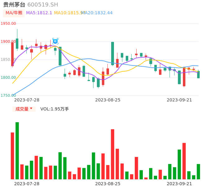 值得注意的是:2023年09月第一上海证券公司的黎航荣分析师,首次发布关于贵州茅台的研究报告,标题为:贵州茅台(600519):行业压力下业绩再超预期 经营增长目标兑现性强。