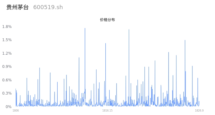 然后我们来看下当日成交的价格分布。将今天股票的最低价与最高价之差形成的价格区间进行切片,并画直方图进行分析,观察成交量在价格区间的分布情况。可以发现,当日的成交分布呈现中间峰分布,这说明,该股票大部分成交集中在中位数附近,说明交易重心较为稳定,短线波动不大。