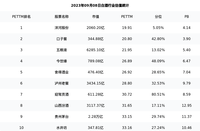 从估值角度看:贵州茅台最新市盈率PETTM为33.15,在行业内排名9/20,处于29.74分位。