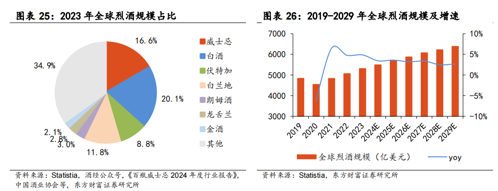2023年全球威士忌规模约881亿美元,占全球所有烈酒规模的16.6%,规模上看仅次于白酒,是全球第二大烈酒。与白酒的生产和消费基本集中在中国不同,威士忌的生产和消费遍及全球,目前全球共有苏格兰、爱尔兰、美国、日本、加拿大五大产区。