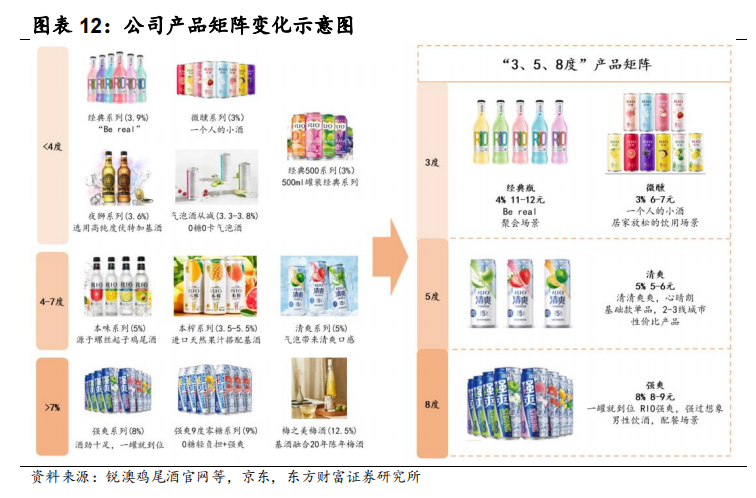 2022年初公司制定锐澳产品“358”(3度、5度、8度酒精含量)品类矩阵规划,基本能满足国内消费者主要的酒精需求