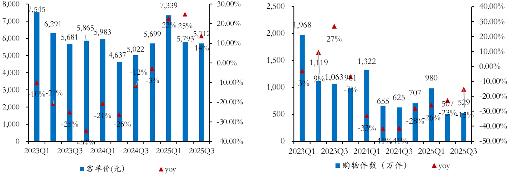 图:离岛免税季度客单价 图:离岛免税季度购物件数 |