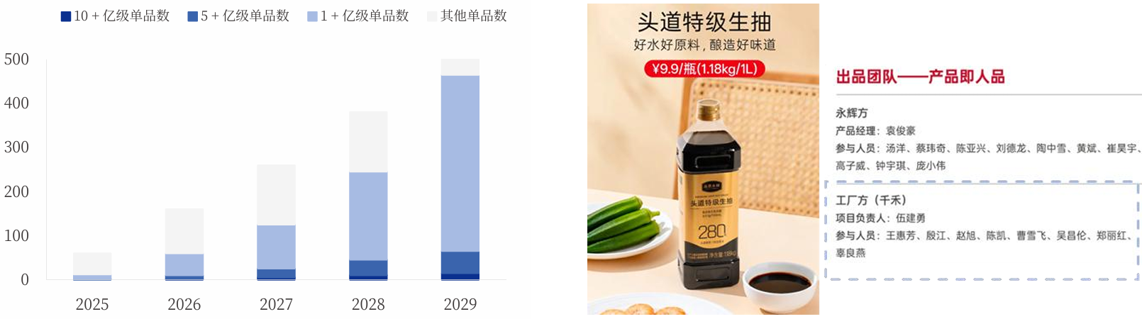 渠道自有品牌:关注能够承接自有品牌代工的上游供应链公司。永辉2025年启动自有品牌“品质永辉”布局,根据官方微信号消息,2026年目标打造2个 10亿级大单品,8个 5亿级大单品,50个1亿级大单品;能够承接商超自有品牌的上游供应链公司有望实现收入增长,目前已经合作的供应链公司包括千禾味业、金龙鱼等。