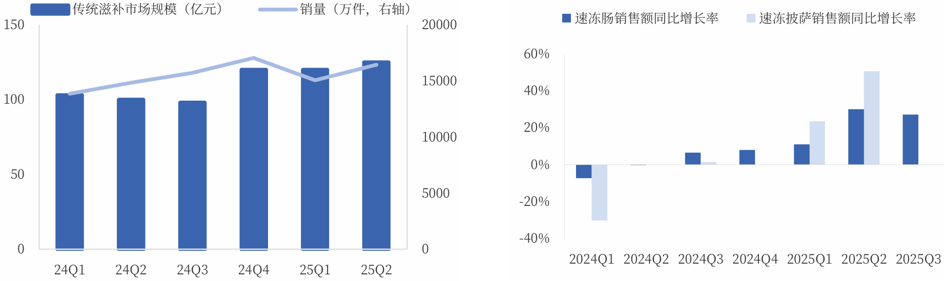 图:传统滋补市场规模逐渐扩容 图:C端速冻肠与速冻披萨景气度高 |