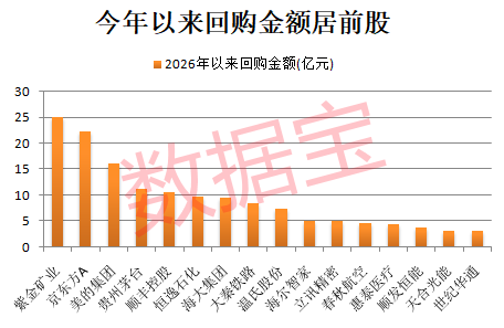 紫金矿业年内回购金额居首,达到25亿元。公司于2026年3月20日董事会会议审议通过了《关于以集中竞价交易方式回购A股股份方案的议案》。截至2026年4月14日,公司已实际回购股份0.77亿股,占公司总股份数的0.29%,已按披露的方案完成回购。