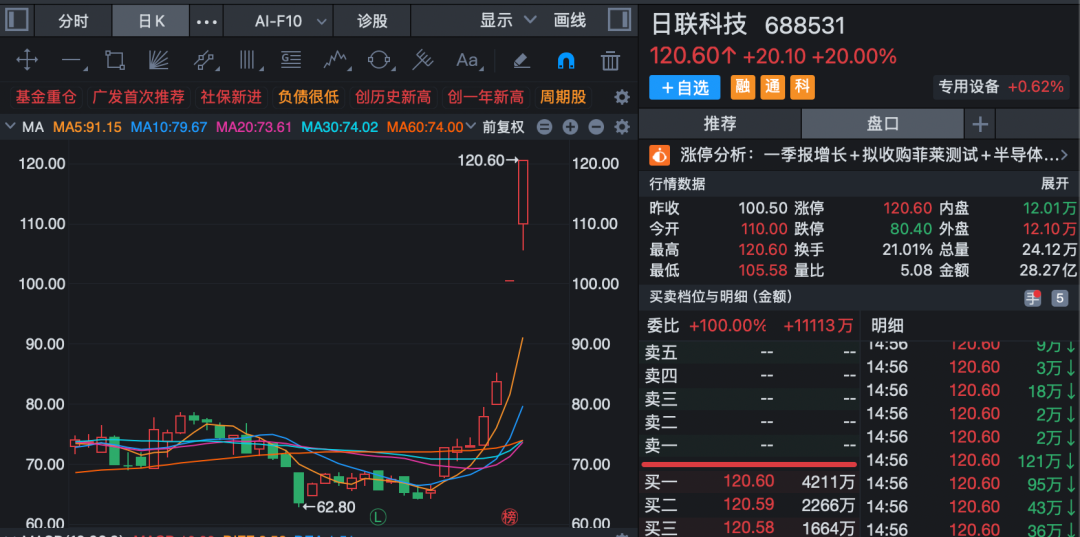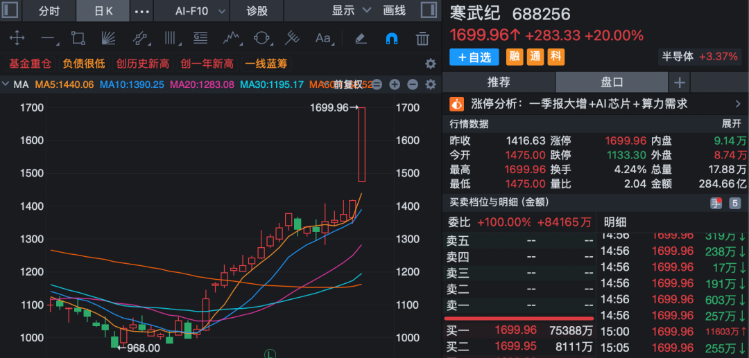 科创板彻底爆发!688531,连续两天20%涨停!寒武纪涨停,成为A股新“股王”!