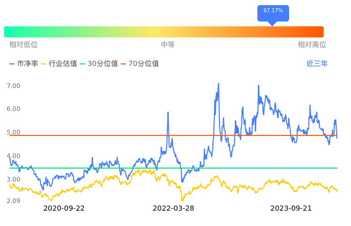 文一科技当前市净率PB为4.79,在所属的专用设备中,市净率PB排148,前五名分别为广日股份市净率0.74、长荣股份市净率0.95、天地科技市净率1.00、越剑智能市净率1.10、创力集团市净率1.14。文一科技当前市净率PB为4.79,超过近3年67.17%的历史数据。