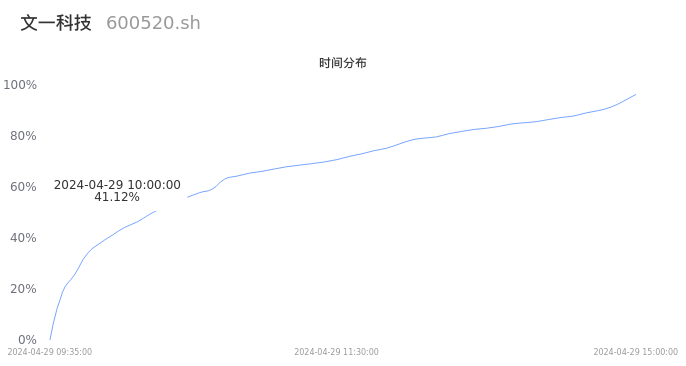根据成交分布分析,该股票当天放量成交,成交活跃。时间上看,早盘前半小时成交量占据当天总成交量的41.12%;价格上看,成交呈现右偏峰。成交分布分析主要研究股票成交的分布特性,不具有预测功能,请知悉。