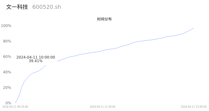 600520文一科技2024年04月11日成交15.86万手,成交金额3.04亿元,相较昨日放量1.89万手,换手率10.01%,成交活跃。