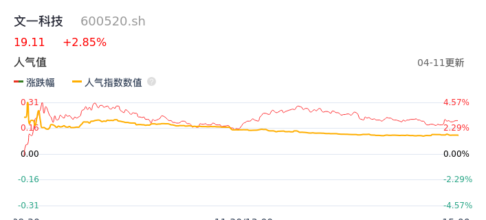 04月11日,文一科技收报19.11,股价涨幅2.85%,成交金额3.04亿元,换手率10.01%。