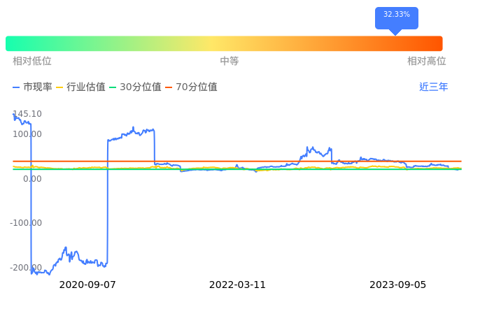2023年09月05日,文一科技上涨0.59%收于13.67,今日成交金额1.79亿元。下文将从市盈率PETTM、市净率PB、市现率3个角度去分析公司估值情况。