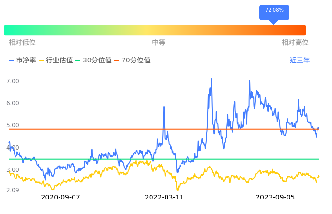文一科技当前市净率PB为4.92,在所属的专用设备中,市净率PB排147,前五名分别为广日股份市净率0.76、长荣股份市净率0.99、天地科技市净率1.03、越剑智能市净率1.09、创力集团市净率1.18。文一科技当前市净率PB为4.92,超过近3年72.08%的历史数据。