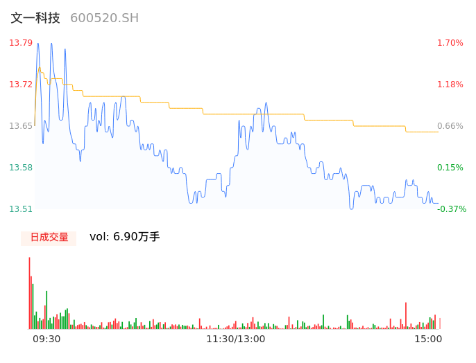 09月11日,文一科技收报13.54,股价涨幅-0.15%,成交金额9407.84万元,换手率4.36%。