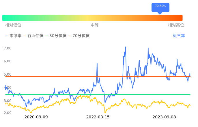 文一科技当前市净率PB为4.88,在所属的专用设备中,市净率PB排144,前五名分别为广日股份市净率0.75、长荣股份市净率0.99、天地科技市净率1.00、越剑智能市净率1.08、创力集团市净率1.16。文一科技当前市净率PB为4.88,超过近3年70.60%的历史数据。
