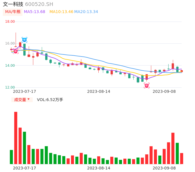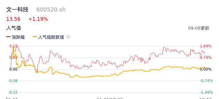 09月08日,文一科技收报13.56,股价涨幅1.19%,成交金额8812.68万元,换手率4.12%。