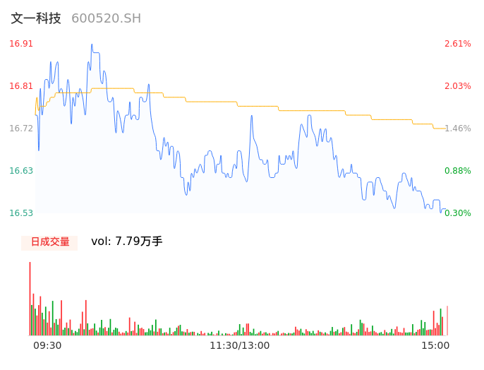 04月23日,文一科技收报16.54,股价涨幅0.36%,成交金额1.30亿元,换手率4.92%。