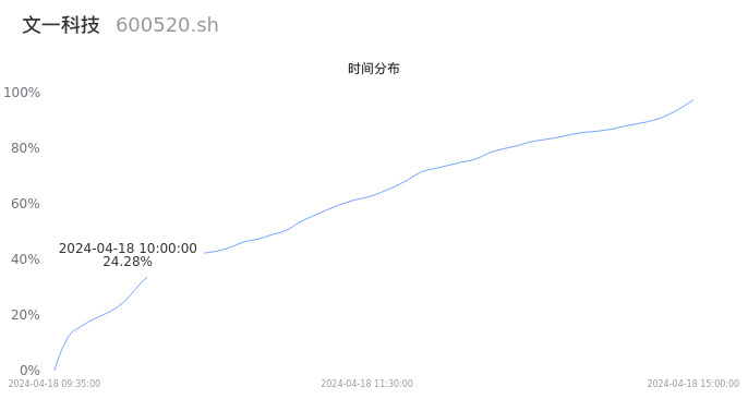 600520文一科技2024年04月18日成交20.28万手,成交金额3.54亿元,相较昨日缩量3552手,换手率12.80%,成交活跃。