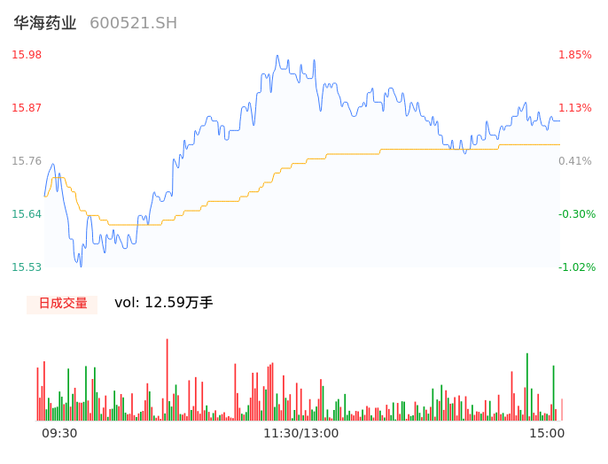 04月25日,华海药业收报15.84,股价涨幅0.96%,成交金额1.99亿元,换手率0.86%。