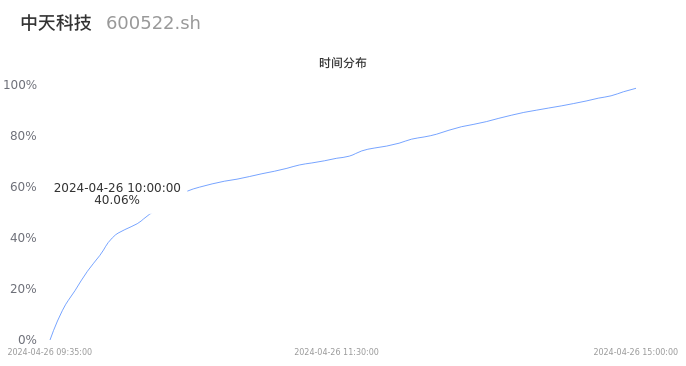 根据成交分布分析,该股票当天放量成交,成交清淡。时间上看,早盘前半小时成交量占据当天总成交量的40.06%;价格上看,成交呈现左偏峰。成交分布分析主要研究股票成交的分布特性,不具有预测功能,请知悉。