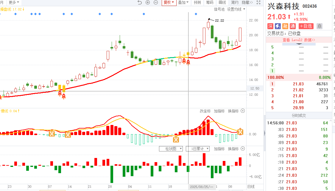 1)20250825-兴森科技-四维操盘-近期出现火箭信号且底部量柱由绿转红
