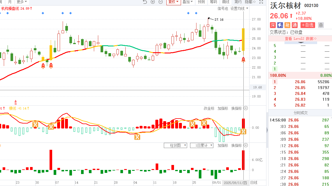 3)20250911-沃尔核材-四维操盘-近期出现火箭信号且底部量柱由绿转红