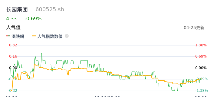 04月25日,长园集团收报4.33,股价涨幅-0.69%,成交金额2394.24万元,换手率0.42%。