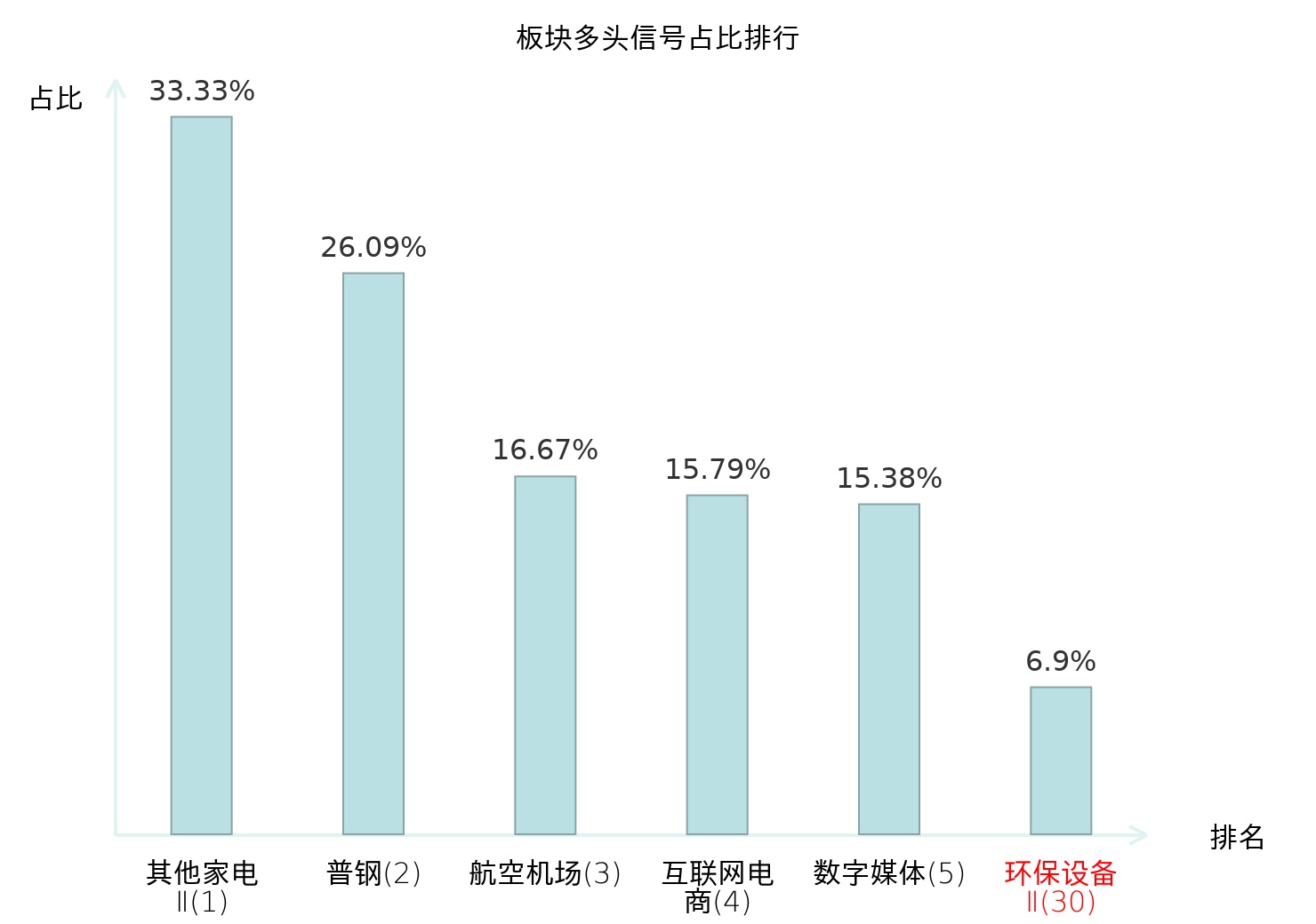 全市场所有行业板块中主力多头信号占比排名中,其他家电Ⅱ板块位居第一。其他家电Ⅱ板块名次提升最快,较昨日上升129位。